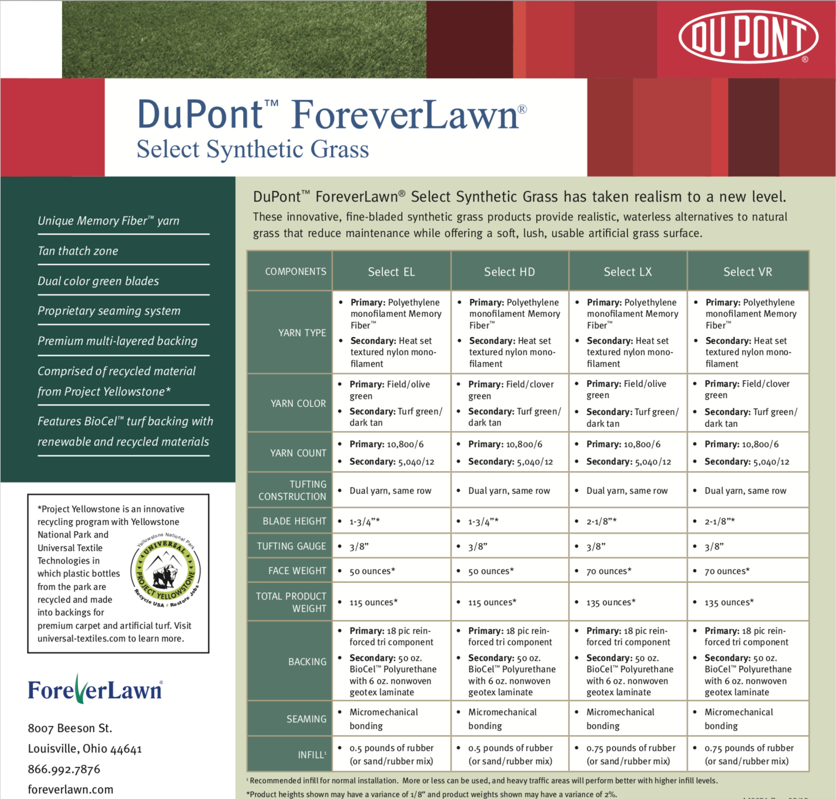 Click on the product names below to view more information about each of our four DuPont™ ForeverLawn®Select Synthetic Grass products.